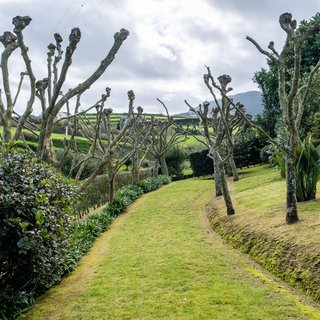 Dieses rustikale Ferienhaus aus Stein hebt sich majestätisch von den Feldern im Nordeste ab, in Basaltfarben, die mit den bunten Blumenbeeten der Hortensien kontrastieren. Von allen Öko-Landhäusern von Tradicampo ist dies der älteste Bau, aus dem 18. Jahrhundert. Bei der Renovierung wurden das Erbe und der Charakter des Hauses in keinster Weise beeinträchtigt; man sieht es an der hohen Decke und den hoch aufragenden Mauern, die das Haus tief im Boden der Insel São Miguel verwurzelt haben, als gehörte es für immer hierher.
